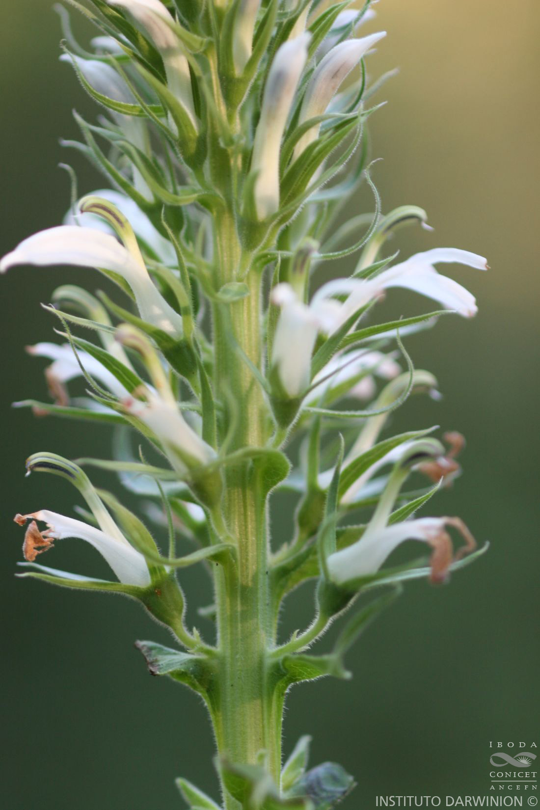Hierbas robustas, de 1-3 m de alto, pubescentes. Hojas lanceoladas de 30-35 x 8-8,5 cm, sésiles, pubescentes, membranáceas, el ápice acuminado, la base decurrentes, márgenes enteros, denticulados. Racimos terminales densos, de 50-115 cm de largo, pubérulos, ocasionalmente con racimos inferiores floríferos; brácteas ovado-lanceoladas, de 28-30 x 5-6 mm, pubérulas, cuspidadas; pedicelos hasta de 10 mm de largo, bibracteolados hacia la porción media, pubérulos. Flores con hipanto de 3,5-4 mm de largo, pubescente; cáliz con lóbulos lineares, de 10-15 mm de largo; corola blanca, lilacina o verdosa a lilacina, de 20-24 mm de largo, pubérula; tubo estaminal piloso; filamentos ensanchados, pubescentes en el dorso; anteras inferiores barbadas hacia el ápice
