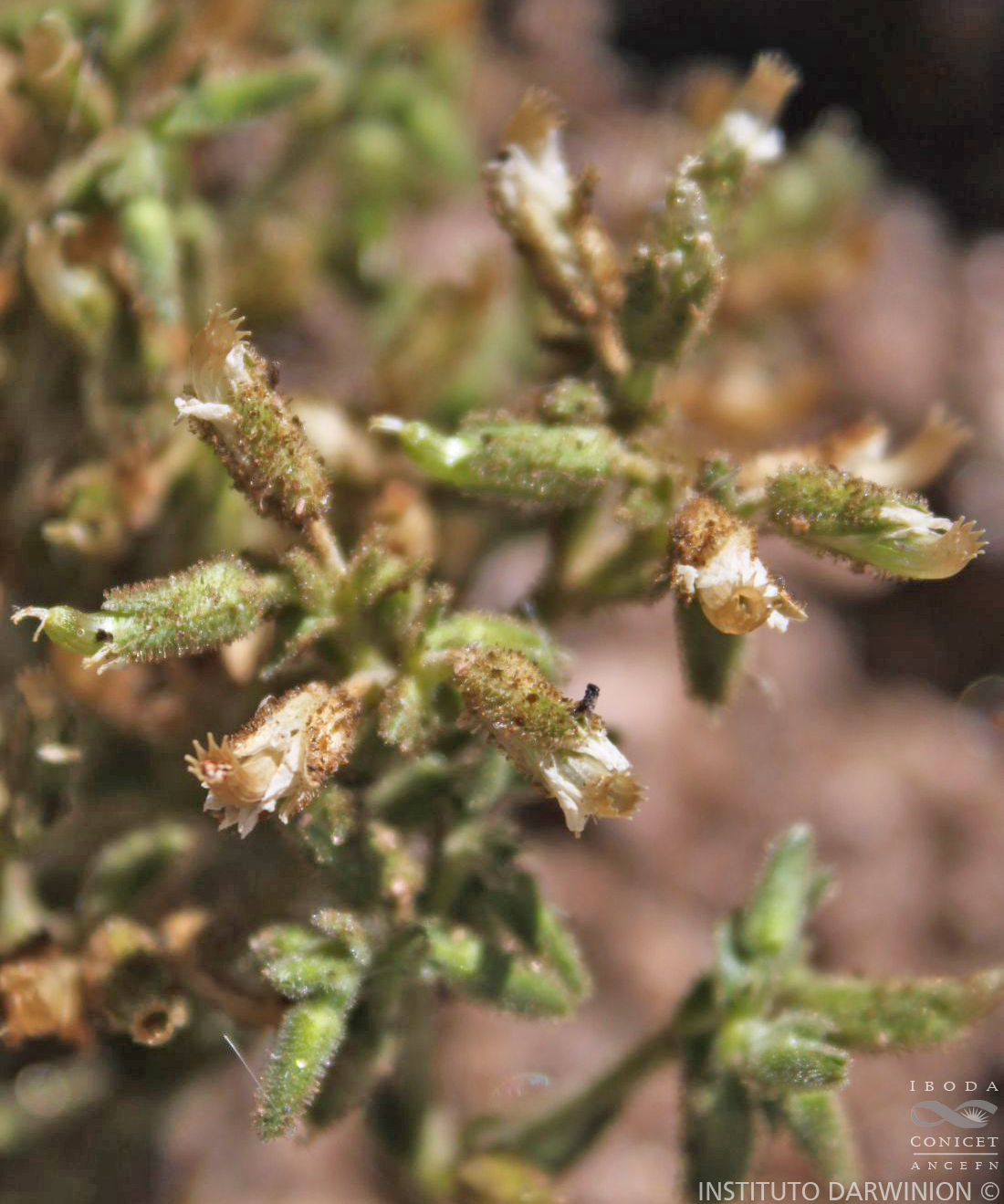 Hierbas anuales, de 5-40 cm de alto, muy ramificadas desde la base; tallos erectos o rastreros y ascendentes, hirsutos, a menudo con tricomas glandulares, todos floridos terminalmente. Hojas sésiles, de 6-30 × 3-15 mm, apiculadas, hirsuto-pubescentes, con nervio medio prominente; las inferiores obovado-espatuladas, atenuadas en la base; las superiores ovado-elípticas. Inflorescencias en cimas 3-50-floras, dicotómicas, con las flores congestas en los extremos de las ramas de la inflorescencia, de aspecto glomeruliforme por ser los pedicelos más cortos que el cáliz; pedicelos de 0,5-4 mm de largo, glandular-pubescentes; cáliz cilíndrico u ovado; sépalos lanceolados, de 3-6,5 mm de largo, papiráceos, con margen escarioso-hialino, con tricomas eglandulares largos, ascendentes, agudos, que a veces sobrepasan el ápice de los sépalos, mezclados con algunos tricomas glandulares; pétalos oblanceolados o elípticos, de longitud similar al cáliz o algo más cortos, 2-fidos en el tercio superior, lóbulos obtusos, seno agudo, a veces los pétalos están ausentes en las flores inferiores; estambres 10, algo más cortos que los pétalos; glándula nectarífera evidente; anteras globosas, amarillas; estilos 5, de 1-2 mm de largo, con superficie estigmática en la mitad distal. Fruto una cápsula cilíndrica, hasta de 8 mm de largo (ca. 2 veces el largo del cáliz), curvada, con 10 dientes erectos. Semillas ca. 1 mm de diámetro, castañas a castaño-rojizas, cortamente tuberculadas, con tubérculos redondeados.