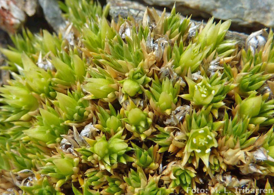Subarbustos formadores de pequeños cojines; raíz leñosa de 0,25 cm de largo, profunda y muy ramificada; tallo de 0,05-0,25 cm de diámetro, algo leñoso en la porción basal, en la porción apical totalmente cubierta por las vainas foliares. Hojas subuladas, hasta ca. 0,5 cm de largo, connadas en la base y envainadoras hasta ca. la mitad de su longitud total, mucronadas, coriáceas, glabras. Flores sésiles o subsésiles, agrupadas hacia el ápice de las ramas; sépalos 5, angostamente ovados, hasta ca. 2,5 mm de largo, agudos o acuminados, frecuentemente mucronados, coriáceos, glabros; estambres más cortos que los sépalos; ovario 20-30 ovulado. Fruto una cápsula más corta que los sépalos, dehiscente hasta la mitad de su longitud. Semillas ca. menos de 20, reniformes, ca. 1 mm de largo, lisas.