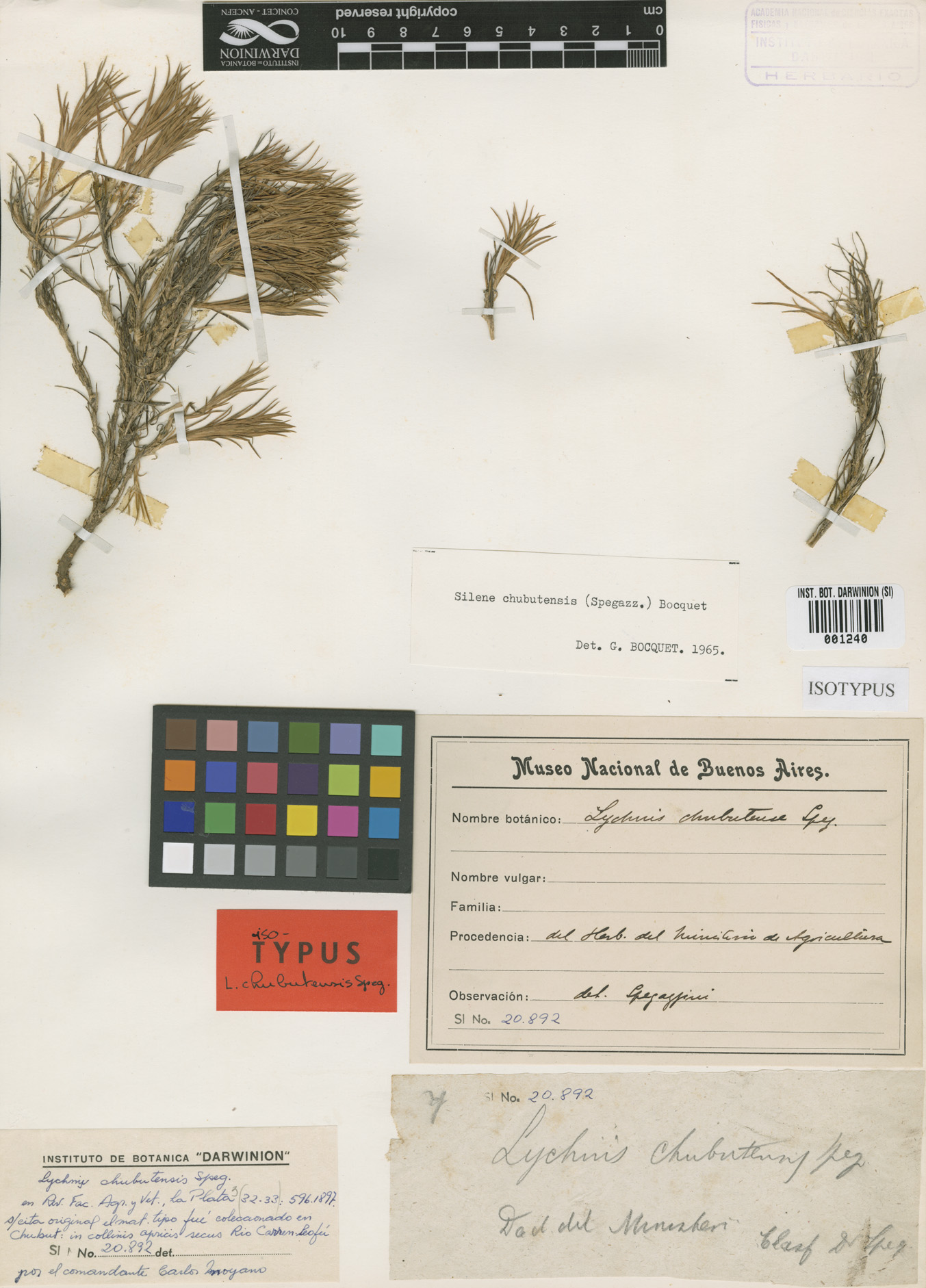 Material Tipo: Basónimo: Lychnis chubutensis Speg.