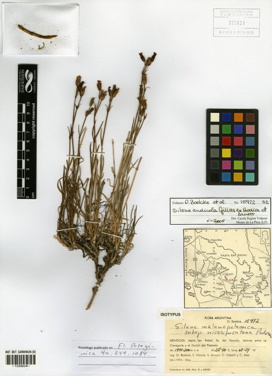 Silene melanopotamica Pedersen subsp. nivosimontana PedersenPedersen Fl. Patagónica, Colecc. Ci. Inst. Nac. Tecnol. Agropecu. 8(4a): 249. 1984