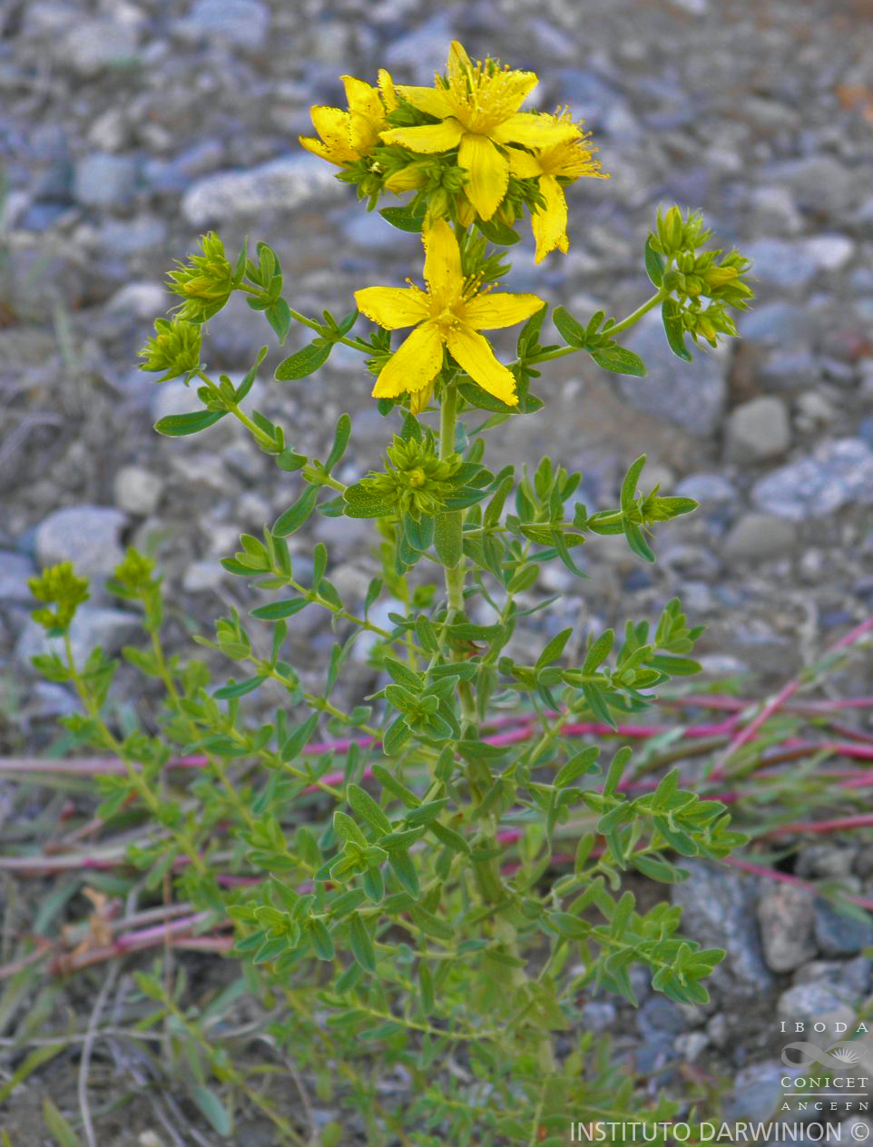 Hierbas perennes, hasta de 60 cm de alto, erectas; tallos con pocas glándulas lineares, negras. Hojas sésiles o cortamente pecioladas; láminas oblongas a lineares, de 2-2,5 × 1-1,2 cm, base decurrente, ápice obtuso, cartáceas, más pálidas en la cara abaxial, glándulas negras, laminares, dispersas en el limbo y punctiformes en el margen. Inflorescencias en cimas dicotómicas terminales con más de 10 flores; pedicelos de 2-3 mm de largo; brácteas lanceoladas a lineares. Flores de 2-2,5 cm de diámetro; sépalos 5, isomorfos, imbricados, oblongo-lanceolados a lineares, de 5- 7 × 1-2 mm; pétalos asimétricos, oblongo-elípticos, 1-1,5 × 0,4-0,7 cm, amarillos, con glándulas laminares marginales, prominentes; estambres 40-60, fasciculados, de 4-8 mm de largo, anteras con glándulas negras, prominentes; ovario ovado-elipsoide, de 3-5 × 2-3 mm; estilos 3, raramente 2; estigmas capitados. Cápsulas ovado-elipsoides, ca. 7 × 9 mm. Semillas ca. 1 mm de diámetro.