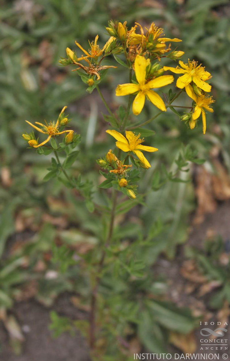 Hierbas perennes, hasta de 60 cm de alto, erectas; tallos con pocas glándulas lineares, negras. Hojas sésiles o cortamente pecioladas; láminas oblongas a lineares, de 2-2,5 × 1-1,2 cm, base decurrente, ápice obtuso, cartáceas, más pálidas en la cara abaxial, glándulas negras, laminares, dispersas en el limbo y punctiformes en el margen. Inflorescencias en cimas dicotómicas terminales con más de 10 flores; pedicelos de 2-3 mm de largo; brácteas lanceoladas a lineares. Flores de 2-2,5 cm de diámetro; sépalos 5, isomorfos, imbricados, oblongo-lanceolados a lineares, de 5- 7 × 1-2 mm; pétalos asimétricos, oblongo-elípticos, 1-1,5 × 0,4-0,7 cm, amarillos, con glándulas laminares marginales, prominentes; estambres 40-60, fasciculados, de 4-8 mm de largo, anteras con glándulas negras, prominentes; ovario ovado-elipsoide, de 3-5 × 2-3 mm; estilos 3, raramente 2; estigmas capitados. Cápsulas ovado-elipsoides, ca. 7 × 9 mm. Semillas ca. 1 mm de diámetro.