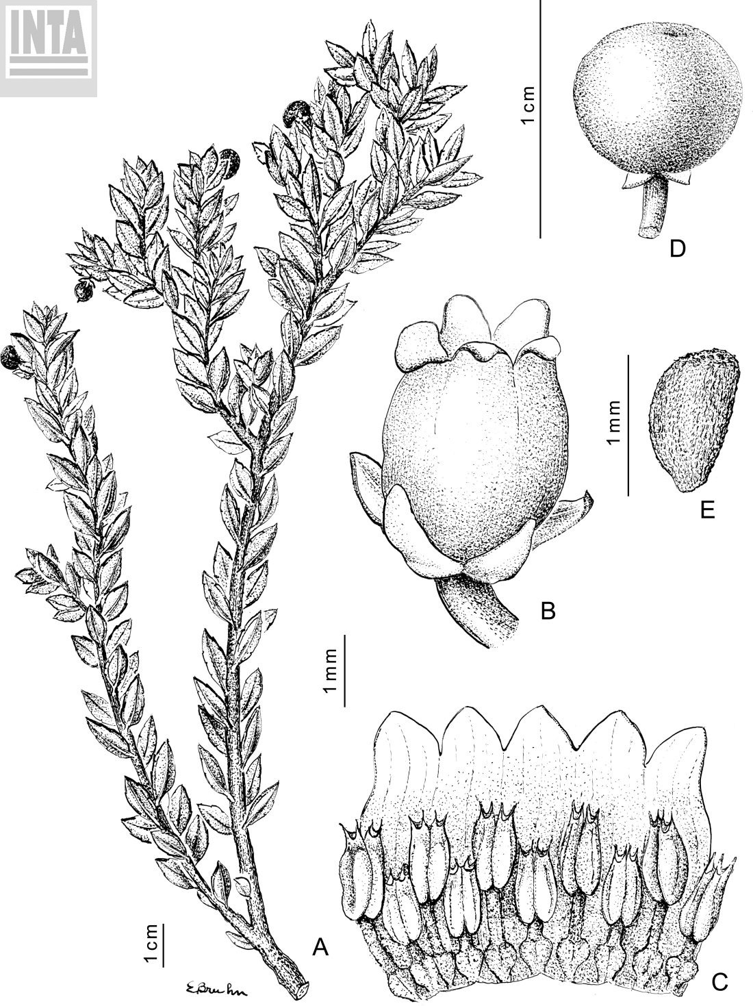 Pernettya mucronata (L. f.) Gaudich. ex Spreng. var. cordobensis Sleumer var. cordobensis Sleumer Notizbl. Bot. Gart. Berlin-Dahlem 12: 652. 1935