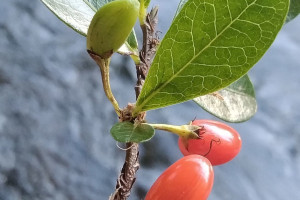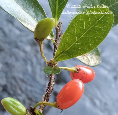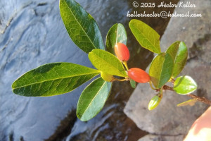Arbolitos o arbustos hasta de 6 m de alto; troncos hasta de 12 cm de diámetro, glabros, corteza de color gris oscuro, densamente verrugosa. Hojas con pecíolos hasta de 3 mm de largo; láminas obovadas a elípticas, de 10-40 × 5-20 mm, base atenuada, ápice redondeado, obtuso o retuso, cartáceas o subcoriáceas cuando adultas, nervio central prominente y los secundarios evidentes en ambas caras; estípulas persistentes, lanceoladas, hasta de 5 mm de largo, 2-fidas en el ápice, enervias. Fascículos 1-4(-5)-floros, sobre braquiblastos axilares de hojas caídas; pedicelos claviformes, ensanchados hacia el ápice, de 3- 6 mm de largo. Sépalos subtriangulares, ca. 1 mm de largo; pétalos libres, elípticos, de 5 × 3 mm, unguiculados, de color verde amarillento, con lígula 2-lobada en la haz; flores brevistilas con filamentos estaminales unidos en la base formando un tubo de 1 mm de largo, porción libre de 1-3 mm de largo; flores longistilas con estambres desiguales, los alternipétalos ca. 1,4 mm de largo y los opositipétalos ca. 2,3 mm de largo, anteras elipsoides u oblongas, de dehiscencia longitudinal; ovario glabro, rodeado por el tubo estaminal; estilos filiformes, de 1-3 mm de largo; estigma capitado. Drupas elipsoides, de 3-6 × 1-3 mm, rectas o levemente curvadas, glabras, rojas, con cáliz y resto de filamentos estaminales persistentes. Semillas de 4-6 mm de largo.