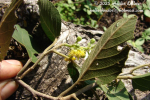 Arbustos o árboles de 6-10(-15) m de alto; corteza cenicienta con lenticelas alargadas; entrenudos apicales pilosos. Hojas con pecíolos hasta de 1,5 cm de largo, pilosos; láminas ovadas o elípticas, a menudo algo inequilaterales, de 5-7(-12) × 2,5-4,5 cm, base obtusa, ápice agudo, borde dentado, dientes romos, con sendas glándulas en el envés, cartáceas casi totalmente glabras en la haz y pilosas en el envés, con una par de glándulas sésiles, gruesas, discoides, en la unión de la lámina con el pecíolo sobre la cara adaxial. Flores fragantes, grandes, amarillas, pediceladas, dispuestas en inflorescencias amplias; sépalos 3, ovados, de 3-5 mm de largo, pilosos, principalmente en la cara externa; pétalos subobovados, de 4-5 mm de largo, de cuerpo central más o menos ovado como los sépalos, margen membranáceo, cortamente piloso, ancho, sobre todo en la mitad apical, pilosos en la cara externa, casi glabros en la interna; estambres numerosos, exertos, fijos en la base de los sépalos y pétalos, de filamentos filiformes; ovario ovoide, glabro, estilo recto, de 2-3 mm de largo, estigma más o menos discoide, 3-lobulado. Frutos de 5-8 mm de diámetro, negruzcos, carnosos. Semillas 6-10, de 2,5 mm de largo.