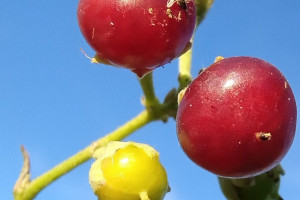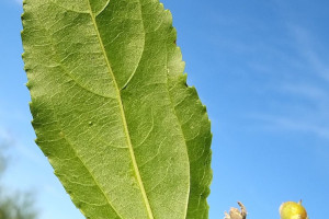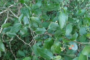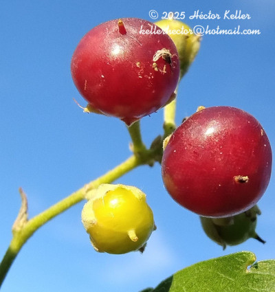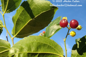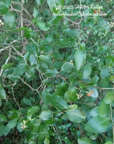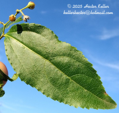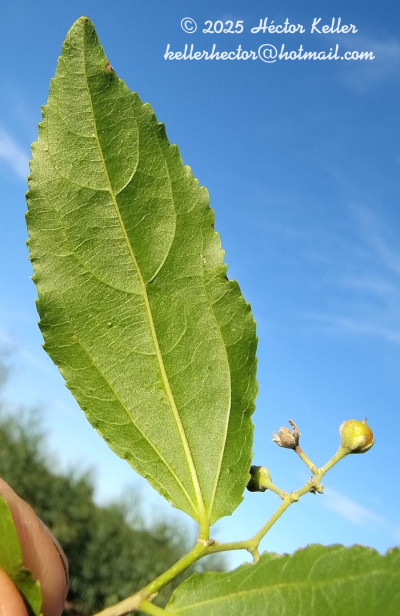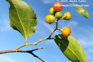 Arbustos o pequeños arbolitos, de 1-3 m de alto; ramas divaricadas, ceniciento-rojizas, con lenticelas redondas. Hojas con pecíolos de 1,8-2,8 mm de largo; láminas ovadas a ovado-oblongas, de 4,5-6,5(-10,5) × 2-3(3,8) cm, base redondeada, ápice acuminado, los márgenes glanduloso-aserrados, membranáceas, pubescentes a glabras; estípulas lanceoladas, caedizas. Panículas terminales de 2-3(-4,5) cm de largo, paucifloras; pedúnculos de 1-1,4 cm de largo, estos y el raquis pilosos; brácteas y bractéolas pequeñas. Flores pequeñas, blanquecinas; sépalos 3, ovados, de 2,8-3,1mm de largo, cortamente pilosos en ambas caras; pétalos 3, ovados, ca. 3 mm de largo; estambres numerosos, anteras pequeñas, amarillas; ovario ovoideo, glabro; estilo ca. 1 mm de largo; estigma 3-lobado. Bayas globosas, de 0,8-1,1 mm de diámetro, negruzcas, rodeadas en la base por el perianto persistente. Semillas numerosas, de contorno oblongo, de 1,3-1,6 mm de largo.
