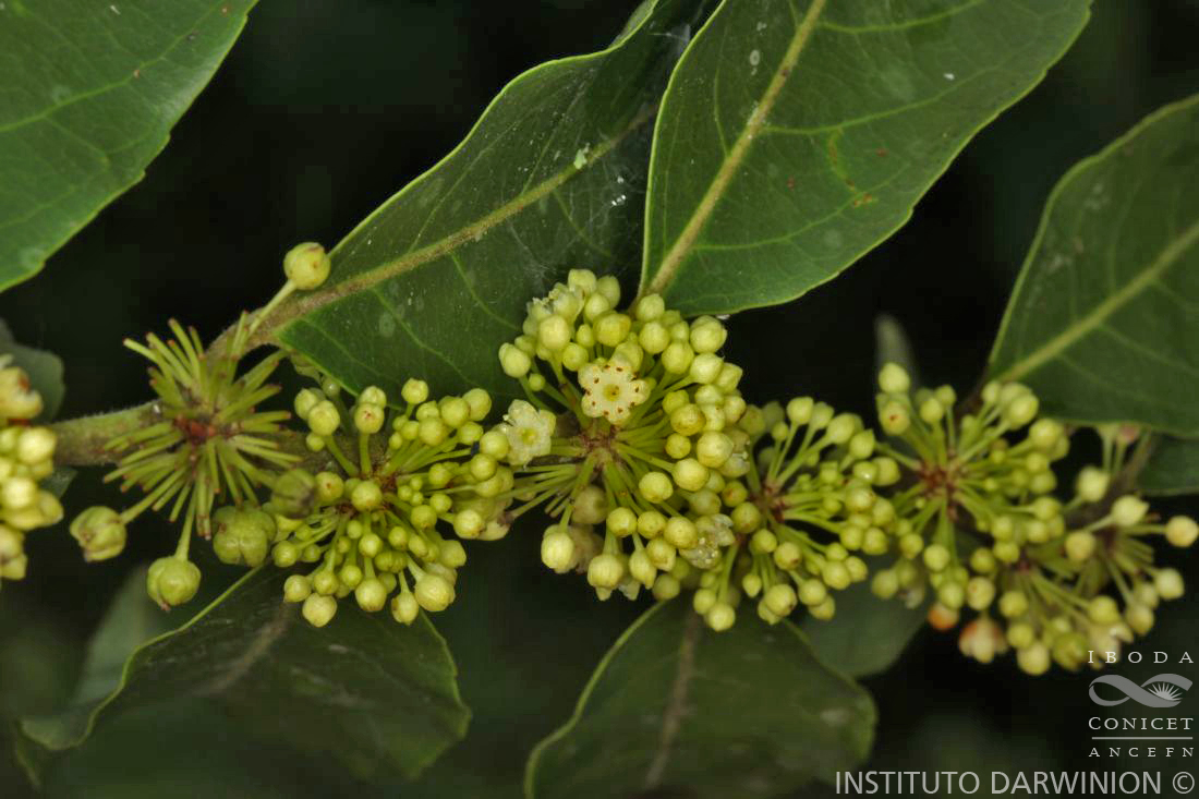 Arbustos o árboles pequeños, de 2-7(-10) m de alto; troncos hasta de 15 cm de diámetro; ramas longitudinalmente estriadas, lenticeladas; ramitas menores pubescentes, castaño-rojizas, las adultas subglabras y de color grisáceo. Hojas dísticas, persistentes; pecíolos de 2,5-8 mm de largo, de sección semicircular, delgados, pubescentes a glabros, deflexos o no; láminas ovado-acuminadas a elípticas, de (3,8-)5,5-13,5 × (2-)3-5 cm, base cuneada, ligeramente asimétrica, marcadamente enangostadas hacia el ápice, acumen agudo, romo o a veces con un apéndice pequeño correspondiente a una prolongación del nervio medio, margen aserrado a crenadoaserrado, cartáceas a coriáceas, leve a conspicuamente discoloras, glabras, ocasionalmente con pelos cortos entre el nervio medio y los nervios laterales a pilosas; estípulas ovado-triangulares, de 0,8-1,3 mm de largo, pubescentes a subglabras, ciliadas, caducas. Fascículos umbeliformes, (18-)20-27(-40)-floros, compuestos de fascículos paucifloros agrupados sobre un eje muy abreviado; brácteas ovadas, pubescentes, de borde ciliado; pedicelos de 1,6- 3,6 mm de largo, cilíndricos, articulados, pubescentes, principalmente por debajo de la articulación. Sépalos 5, ligeramente unidos en la base, anchamente ovados, de 1,5-2 mm de largo, amarillento-pálidos a blanquecinos, pubescentes a glabrescentes, ocasionalmente verdosos; disco con efiguraciones más cortas y robustas que los filamentos, claviformes o cilíndricas con un ensanchamiento apical, mechón de pelos largos, abundantes; estambres 10, filamentos de 1-1,5 mm de largo, glabros o pilosos, anteras subglobosas, con una mancha oscura dorsal y a veces un pequeño apéndice conectival; ovario globoso; estilo subulado, más o menos entero o dividido en 3 ramas; estigmas capitados. Cápsulas ovoideo-globosas, de 2,6-3,6 mm, glabras, amarillas, castañas a rojizas a la madurez, 3-valvadas, valvas subcoriáceas. Semillas 2 a 6, elipsoides, aplanadas, de 1,4-1,9 mm de largo.