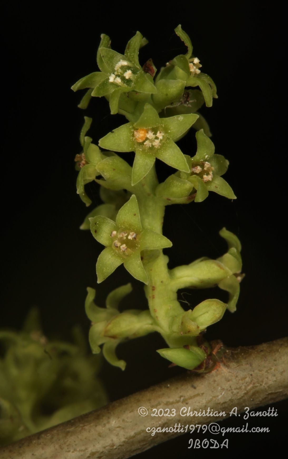 Arbusto ca. 2 m de alto. Hojas de 6-14 × 1,4-3,8 cm. Flores con los lóbulos del perigonio ca. 1,5 × 1 mm; estilo de igual longitud que los estambres; receptáculo ca. 2 mm de largo; brácteas florales ca. 1,5 × 1 mm. Fruto ca. 6,5 × 6 mm.