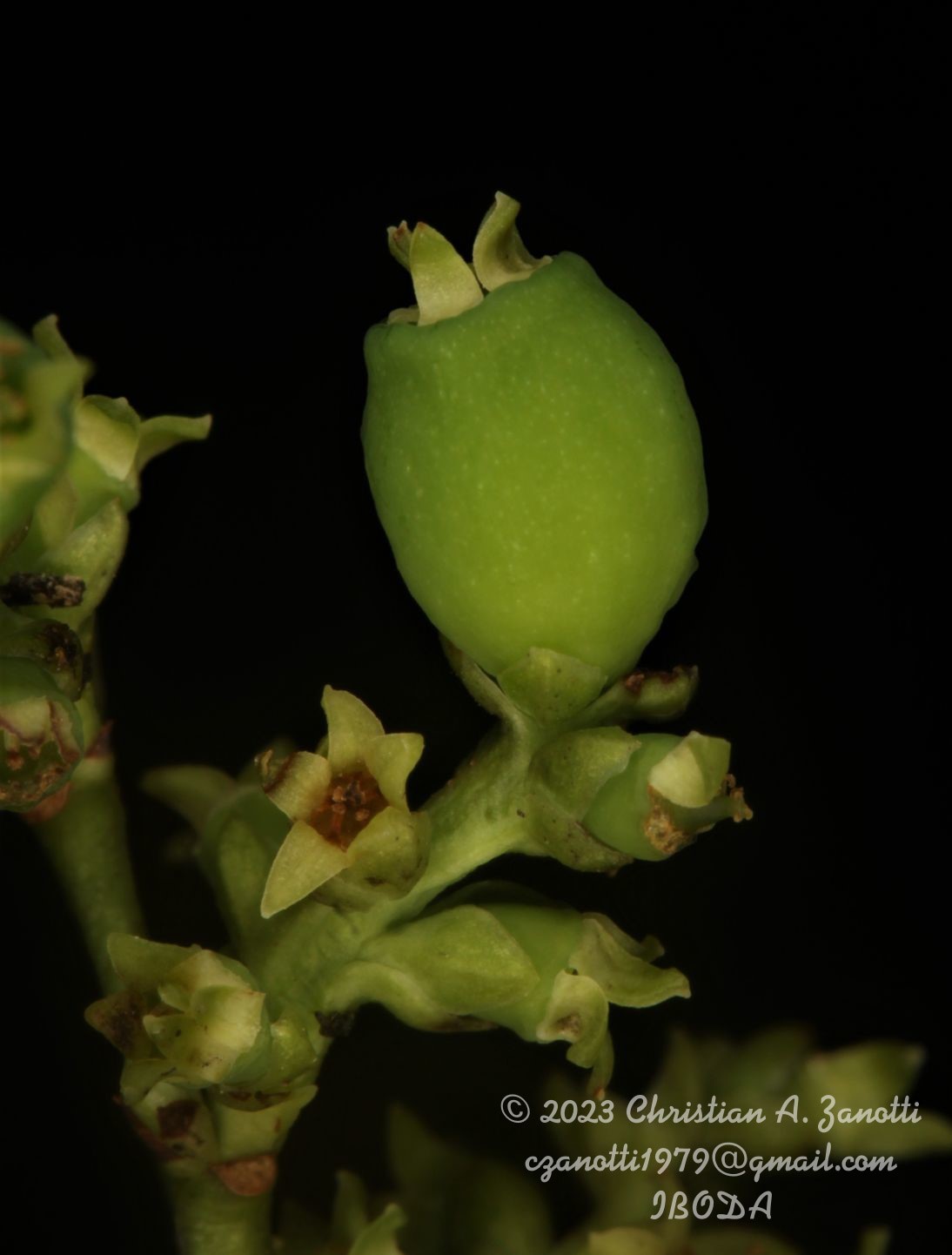Arbusto ca. 2 m de alto. Hojas de 6-14 × 1,4-3,8 cm. Flores con los lóbulos del perigonio ca. 1,5 × 1 mm; estilo de igual longitud que los estambres; receptáculo ca. 2 mm de largo; brácteas florales ca. 1,5 × 1 mm. Fruto ca. 6,5 × 6 mm.