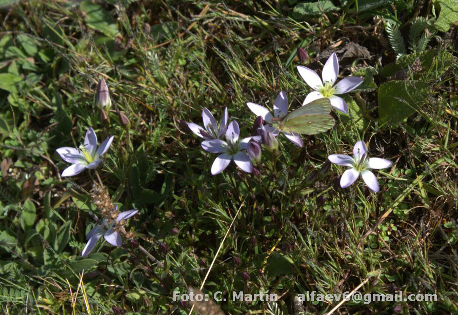Hierba anual, erecta, grácil, de 10-55 cm de alto, tallo simple, ramoso-divaricado, con ramas desde cerca de la base o más arriba, laxamente hojosas. Hojas 3-nervadas, las basales ausentes o muy escasas, espatuladas con base atenuada, de 7-14 × 4 mm, las caulinares ovadas con base cordiforme a angosto-ovadas, agudas, de 7-20 × 3-13 mm, decrecen notablemente en longitud desde la base al ápice. Cimas laxas 2-5-floras, solitarias en las axilas foliares. Flores perfectas; pedicelos de 12-55 mm de largo, mucho más largos que las flores; cáliz de 5-8 mm de largo, tubo de 1,5-2,5 mm de largo, lóbulos linear-triangulares, agudos, hasta dos veces más largos que el tubo; corola blanca a blanco-amarillenta, de 8-15 mm de largo, glabra, lóbulos ovados, obtusos, subagudos, agudos (subespatulados en flores viejas), de 5-9,5 mm de largo, raro hasta el doble de largos que el tubo, nectarios en U, poco conspicuos; estambres con filamentos insertos cerca de la mitad inferior del tubo corolino, anteras exertas, de 1,1-1,5 × 0,5-1 mm; gineceo fusiforme, sésil o subsésil (con ginóforo de menos de 0,5 mm de largo), lóbulos estigmáticos ovados, muy papilosos. Cápsula madura más corta que la corola. Semillas elipsoideas, de 0,6-0,7 × 0,4-0,5 mm.