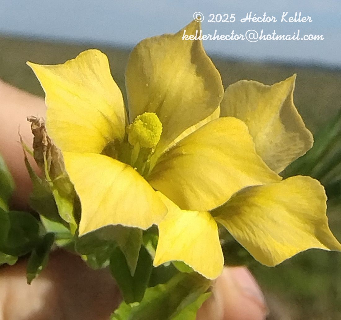 Hierbas de 17-50 cm de alto, tallos 4-costados, con finas alas plegadas en los ángulos. Hojas caulinares ovadas a angosto-ovadas, 3-nervadas, las superiores, de 12-35 × 4-18 mm, más agudas y largas que las inferiores, de 6-15 × 3-8 mm; brácteas y bractéolas aquilladas, carenadas. Inflorescencias en dicasios simples 3-floros o con dos ramificaciones o bien, flores solitarias apicales o axilares. Flores con el cáliz urceolado, 4-alado, de 15-24 mm de largo, alas retinervadas, de 1,5-2,5 mm de ancho, lóbulos ovados a subtriangulares, aleznados, más cortos que el tubo, de (5-)7-9 mm de largo; corola de (17-)20-25(-27) mm de largo, glabra, amarillo-verdosa, amarilla o rosa, con el fondo más oscuro, tubo infundibuliforme, estrechándose hacia la mitad superior, lóbulos obovados a espatulados, de 4,5-10 × 3-9 mm, apiculados, 5-nervados; filamentos estaminales insertos ca. la mitad inferior del tubo, alas sinuosas, anteras con apículo corto y grueso, de 2-3 × 1 mm, granos de polen con exina semitectada reticulada, con muros angostos; ovario un poco más largo que el estilo, lamelas estigmáticas transovadas a subcirculares, recurvadas completamente en la antesis, de 2 mm de diámetro. Cápsula con 4 costillas poco manifiestas en el 1/3 superior, completamente cubierta por el cáliz persistente. Semillas 350-450 por fruto, elipsoideas o subesféricas, subanguladas, con diámetro menor de 0,5 mm, episperma reticulado.