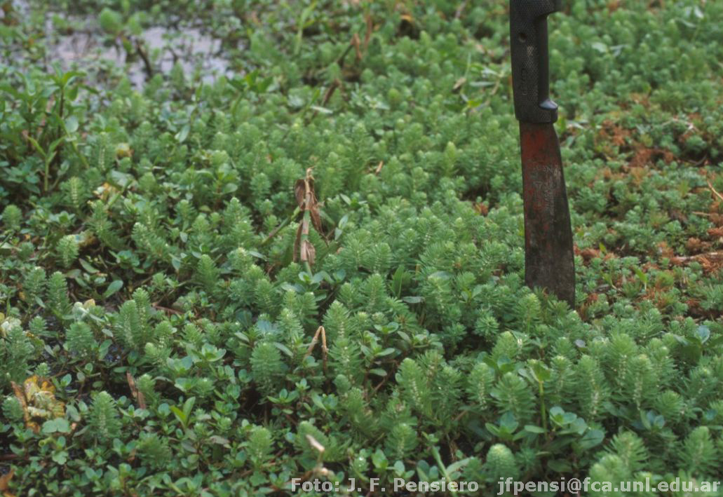 Hierbas palustres o acuáticas, perennes, dioicas; tallos glabros, hasta de 1,5 m de largo, con 3-6(-10) emergencias filiformes en cada nudo. Hojas verticiladas, 4(-5)-6 por nudo, monomórficas, de contorno angostamente elíptico, con emergencias rudimentarias en su base, laciniadas, las sumergidas mayores que las aéreas, glabras. Inflorescencias en espigas estaminadas y pistiladas en distintos individuos. Flores circundadas por 2 brácteas lineares, 3-fidas, sin emergencias glandulares evidentes. Flores estaminadas pediceladas ; sépalos glabros, de 1,4 mm de largo, laciniados hacia el ápice; pétalos 4, obovados, de 2-2,4 mm de largo, los bordes hialinos; estambres 8, anteras lineares de 2,2-3 mm de largo; pistilodio diminuto. Flores pistiladas subsésiles, con sépalos triangulares, persistentes; corola nula o apenas insinuada. Fruto con mericarpos ovoides, 4-partidos.