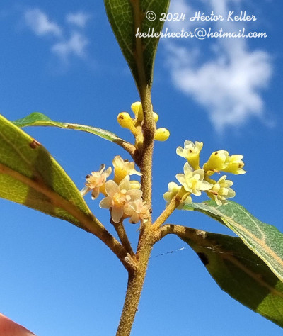 Árboles hasta de 10 m de alto; ramas angulosas o más o menos cilíndricas, pubérulas, con lenticelas salientes, ovales, Hojas alternas, con pecíolos de 2-7 mm de largo, tomentosoferrugíneos a glabrescentes; láminas oval a elíptico-lanceoladas, más raro obovadas u orbiculares, de 2-8 × 0,7-2,7 cm, base atenuada, ápice cortamente acuminado con el extremo redondeado, menos frecuentemente agudo, margen entero, calloso, algo revoluto, glabro, a veces con pelos ralos, coriáceas, pinnatinervadas, axilas de las nervaduras primarias escrobiculadas y barbadas en el hipofilo, y con pequeñas tumescencias en el epifilo. Inflorescencias en panículas axilares, menos frecuentemente pseudoterminales, de 1-4 cm de largo; pedúnculos de 0,7-1,7 cm de largo, tomentoso-ferrugíneos; pedicelos florales de 0,4-1,2 mm de largo, pubescentes; bractéolas pequeñas, oval-lanceoladas, tomentosas en la cara externa, caducas. Flores imperfectas de 2,5- 3 × 2,4-3 mm, blanco-amarillentas; tépalos externos algo más cortos que los internos, anchamente ovados, subcuculiformes, de 1,5-2,3 × 1,2-1,7 mm, los internos ovados, base truncada, ápice más o menos obtuso, tomentosos a glabros; estambres de los ciclos I y II fértiles, incurvos, finalmentos de 0,3-0,5 mm de largo, glabros, comprimidos, anteras contraídas en el medio, ovadas, de 0,9-1,5 × 0,5-1 mm de ancho, base redondeada, ápice obtuso, glabras, lóculos introrsos; estambres del ciclo III fértiles, erectos, de 1,5 mm de largo, glabros, con filamentos de 0,5 mm de largo, glabros, anteras rectangulares con lóculos superiores de dehiscencia lateral y los inferiores extrorsa, glándulas más o menos 3-lobadas, de 0,4-0,5 mm de diámetro, sésiles o subsésiles; ciclo IV estéril, con estaminodios subulados, a veces soldados al ciclo III, raro parcialmente desarrollados; flores pistiladas con estaminodios de forma semejante a los estambres, pequeños, de 0,5-0,75 mm de largo, glabros; ovario subgloboso, de 1,6-1,75 mm de largo × 0,75 mm de diámetro, glabro, estilo cilíndrico, alargado, ca. 1 mm de largo, con estigma obcónico, cupuliforme, oscuro, muy desarrollado; flores estaminadas con pistilodio claviforme de 2-3 mm de largo × 0,4-0,5 mm de diámetro, glabro, estilo grueso, estigma ensanchado, conspicuo, papiloso. Fruto baya elipsoidea, de 6-8 mm de largo × 4-5 mm de diámetro, el ápice rostrado (resto del estilo); cúpula obcónica, de 5-7 mm de diámetro, glabra, coriácea, con margen simple, agudo, recubriendo 1/3 del fruto; pedicelo algo engrosado uniéndose gradualmente a la cúpula, de 1-2 mm de largo, glabro o más o menos pubérulo.