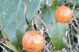 Arbusto escandente de 2-10 m de alto, con espinas rectas o curvas hasta de 1,5 cm de largo, sin zarcillos. Hojas de 2,5-5,5 × 0,6-3 cm, pecíolos de 1-4 × 0,5 mm. Inflorescencias con pedúnculos de 0,6-2,6 cm de largo y ca. 0,5 mm de diámetro. Flores de 1,5-4,5 mm de largo, la flor central de cada cima sésil o subsésil y las laterales pediceladas; cáliz ca. 1 mm de largo; corola ca. 2,5 mm de largo; estambres con anteras ca. 0,75 mm de largo. Fruto de 1,5-2 cm de diámetro, con pedicelo de 2-4,5 mm de largo y ca. 2 mm de diámetro. Semilla ca. 1,5-9 mm de diámetro.