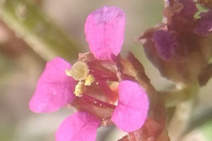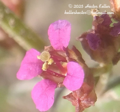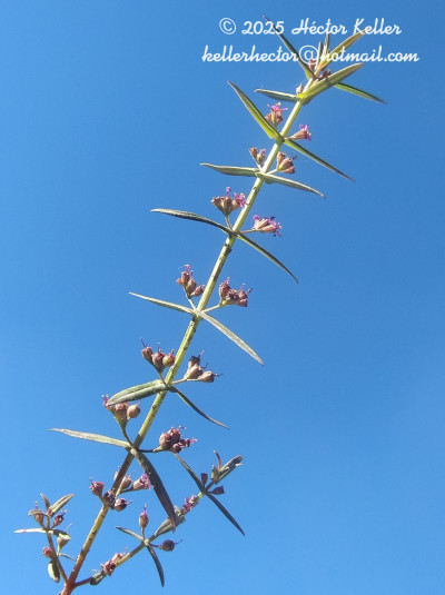 Hierba de 50-80 cm de alto, glabra. Hojas con láminas subuladas, de 4-7 × 0,4-1 cm, base auriculada. Inflorescencias en cimas paucifloras, axilares; pedúnculos de 6-8 mm de largo. Flores con pedicelos de 0,5-1 mm de largo, 2-bracteolados; tubo floral persistente, cupuliforme; sépalos 4; apéndices intersepalinos 4; pétalos 4, suborbiculares, de 2,5 mm de diámetro, fijos cerca del margen interno del tubo floral, rosados; estambres 4, fijos en la mitad inferior del hipanto; ovario globoso, de 1,2 mm de largo, estilo filiforme, ca. 2 mm de largo, exerto en la antesis, estigma capitado. Fruto una cápsula globosa, ca. 2,5 mm de diámetro, rodeada por el tubo floral hipertrofiado. Semillas de contorno subtriangular, ca. 0,4 mm de largo, dorso convexo y cara ventral excavada.