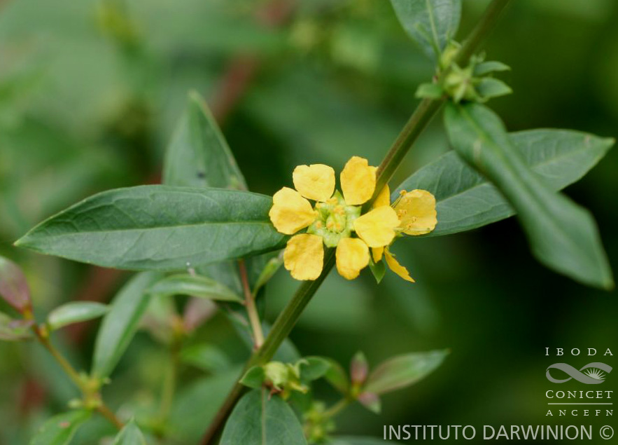 Arbusto de 1-3 m de alto, glabro; tallos ramosos, leñosos, ca. 5 mm de diámetro. Hojas opuestas o en verticilos 3-meros, sésiles; láminas elípticas, de 2-6(-8) × 0,4-1(-1,5) cm, ápice agudo, generalmente con una glandulita en el ápice, base decurrente, margen ± revoluto, con nervio central manifiesto, discoloras. Flores con pedicelos de 1-2 mm de largo; bractéolas 2, obovado-elípticas, ca. 5 mm de largo; tubo floral turbinado, con 1 par de bractéolas ± del mismo largo; lóbulos triangulares; apéndices intersepalinos más largos que los lóbulos; pétalos obovados, de 10-18 × 8-12 mm, amarillos; estambres 11-18(-27), de largo desigual; ovario 4-locular, ca. 3 mm de diámetro; estilo grueso, 2-3 veces más largo que el ovario, estigma capitado, grueso. Fruto una cápsula, de 5-7 mm de largo, cubierto por el tubo floral urceolado o campanulado, con los lóbulos sepalinos patentes, erecto-patentes o reflexos. Semillas numerosas, subpiramidales, ca. 0,8 mm de largo, asimétricas, finamente estriadas.