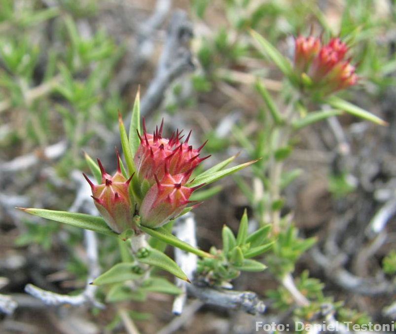 Subarbusto hasta de 20 cm de alto, achaparrado o en cojines; rizoma hasta de 20 cm de largo y 2 cm de diámetro, leñoso, pardusco; tallos leñosos en la base, ramas jóvenes finamente pubescentes; entrenudos hasta de 15 mm de largo. Hojas sésiles, láminas ovado-lanceoladas, de 2-9 mm de largo, base decurrente, ápice espinescente, glabras o finamente pubescentes, ciliadas en la porción inferior. Inflorescencia en espigas muy congestas; brácteas lanceoladas de 4-5 mm de largo; cáliz campanulado, ca. 8 mm de largo, subzigomorfo, glabro o pubescente; apéndices intersepalinos rígidos, curvos; apéndices opositisépalos de tamaño variable, pudiendo faltar; pétalos obovados, ca. 6 × 6 mm, rosados; estambres (10-)11(-12), exertos, filamentos glabros; ovario ovoide-asimétrico, estipitado, 6-8-ovulado; óvulos erguidos. Fruto una cápsula 6-8-seminada. Semillas subpiriformes, finamente foveoladas, negras