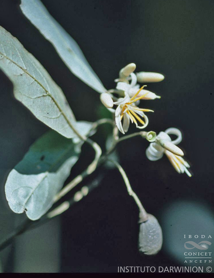Árbol de 5-25 m de alto, las ramas jóvenes cubiertas densamente por escamas peltadas, plateadas, glabrescentes a la madurez. Hojas elíptico-lanceoladas, oblongas a obovadas, raro oblanceoladas, de 3-9 × 1,5-3,5 cm, cartáceas, discoloras, de base cuneada, ápice agudo a acuminado, cara adaxial glabra con puntos blancos, cara abaxial densamente cubierta por tricomas escamosos de 0,3-0,5 mm de diámetro, plateados y con la porción central de las escamas de color castaño; pecíolo de 6-10 mm de largo. Inflorescencia en racimos axilares de 3-6 cm de largo, hasta con 10 flores, raquis pubescente, cubierto por tricomas escamosos. Flores de 1-1,8 cm de largo, pedúnculo de 5-7 mm de largo; cáliz de 2-3,5 × 3-4 mm, cortamente 5-denticulado a inconspicuo, cubierto con tricomas escamosos, plateados, densos; corola con el tubo de 2-4 mm de largo, lóbulos lanceolados, reflejos, de 10-12 × 1-2 mm, densamente cubiertos de tricomas escamosos plateados en el exterior, en el interior a veces glabrescentes; estambres de 8-9 mm de largo, con los filamentos cubiertos en la cara ventral de tricomas barbados, en la cara dorsal con tricomas escamosos y estrellados; anteras de 5-6 mm de largo, con tricomas estrellados dispersos sobre las tecas; ovario de 2-2,5 × 1-2 mm, con indumento denso de tricomas escamosos, plateados, estilo filiforme, glabro. Fruto una drupa elipsoide u obovoide de 1-1,2 × 0,4-0,6 cm, recubierta por tricomas escamosos plateados semejantes a puntuaciones y con el cáliz persistente.