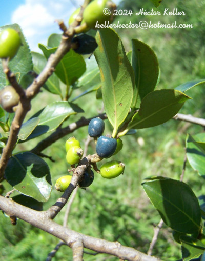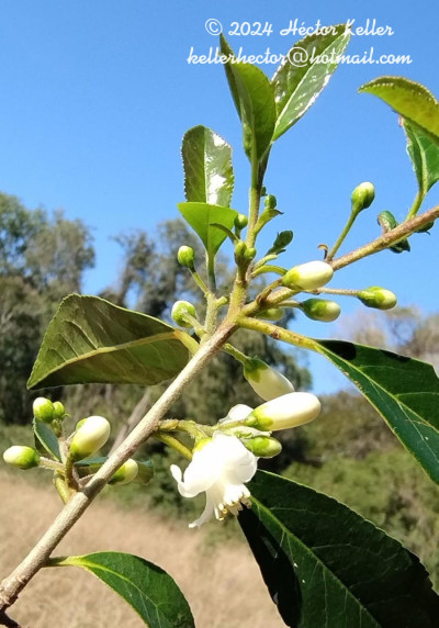 Árboles hasta de 8 m de alto, con ramas pilosas en la porción superior o raramente glabras. Hojas elíptico-lanceoladas, de 4-9 × 2-4 cm, con borde aserrado, subcoriáceas; pecíolos de 6-15 mm de largo. Flores perfectas, solitarias o dispuestas en racimos axilares, racimos de 8-20 mm de largo, con 4-8 flores; cáliz ca. 2 mm de largo, con 5 dientes erectos [in vivo], agudos, verdes; corola de 7-10 mm de largo, glabra, enteramente blanca o con tonos morados o rosados, con 5-7 lóbulos apenas soldados en la base, la mitad inferior erecta y la superior patente o reflexa [in vivo]; estambres 25-45, adnatos en la porción media de la corola, de 0,5-4 mm de largo, de diferentes tamaños, uniformemente distribuidos, los filamentos ensanchados y aplanados, con un estrechamiento apical que une a las anteras; ovario 3-5-locular; disco nectarífero cilíndrico, levemente pubescente; estilo de 4,5-7 mm de largo, glabro o levemente pubescente en la mitad inferior; estigma lobulado. Fruto oblongo-ovoideo o elipsoide, 3-5-locular, de 1-1,5 cm de largo, glabro, negro, coronado con un cáliz sobrepasando el disco en altura o en el mismo nivel, endocarpo espeso y duro.