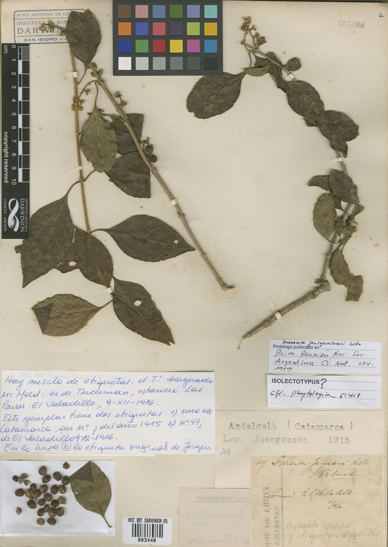 Árboles o arbustos hasta de 10 m de alto; ramas tetrágonas, inermes, entrenudos de 2-3 cm de largo. Hojas opuestas, pecíolo de 5-7 mm de largo; láminas de 2-3,5 x 0,8-1,5 cm, elípticas u obovadas, cartáceas, discolores, glabras en ambas caras, con ápice agudo u obtuso, base decurrente, margen serrado en la parte media y entero hacia la base y el ápice. Florescencias terminales sobre braquiblastos, 5-7-floras, erguidas o algo nutantes. Flores alternas, pedicelos de 1,5-2 mm de largo, pubérulos, con brácteas inconspicuas; cáliz campanulado, persistente, de 2,5-3 mm de largo, tubo glabro, punteado-glanduloso, 5-dentado en el margen, dientes pequeños, subiguales, pilosos; corola amarillenta. Frutos negruzcos, esféricos, de 5-6 x 4-5 mm.