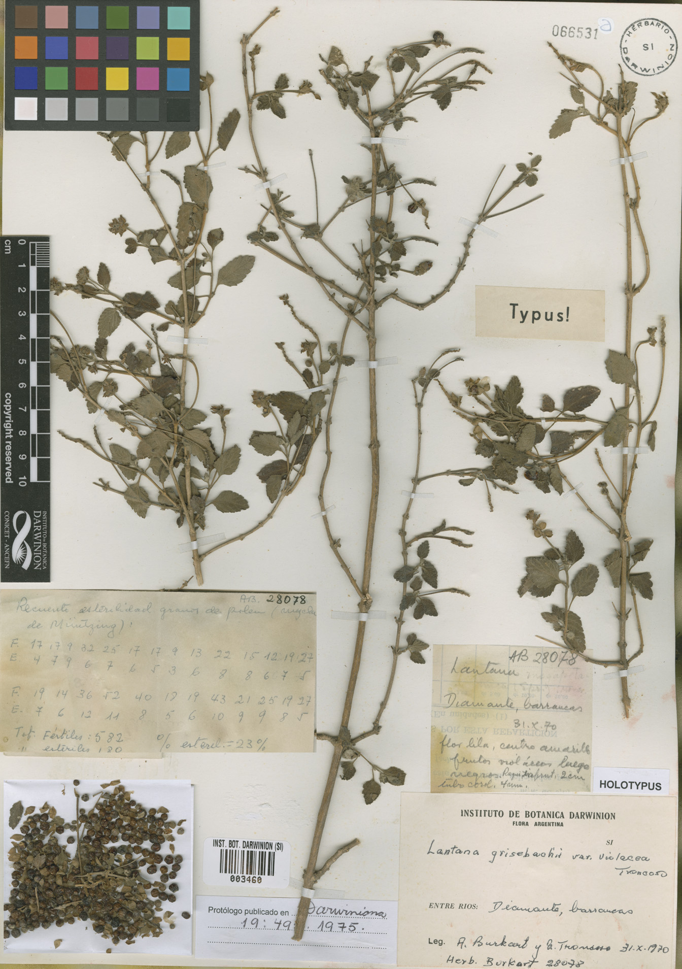 original de Lippia megapotamica, depositado en B, está