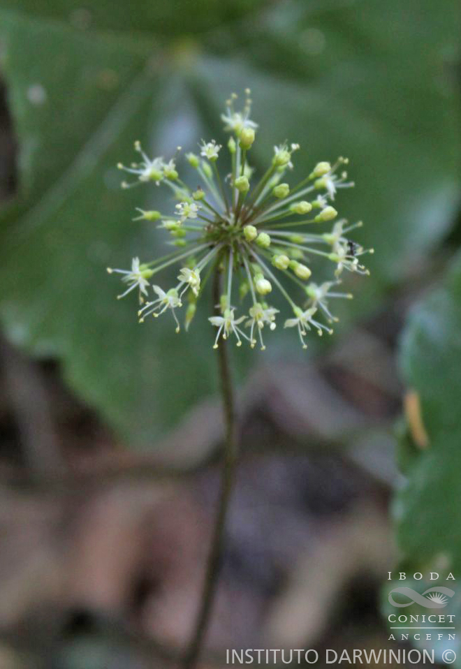 Plantas perennes, delicadas, subglabras; tallos delgados, rastreros o escandentes. Hojas paláceas, pecíolos de 4-20(-30) cm de largo, diminutamente hirsuto, principalmente hacia arriba; lámina orbicular-reniforme, de 3-13 cm de diámetro; 7palmatinervada, 7-9-lobada, glabra o escasamente pilosa en la cara superior, hirsútula sobre las venas de la cara inferior; lóbulos obtusos, generalmente triangular-obtusos, a veces redondeados, crenados, seno basal profundo, alcanzando el pecíolo. Umbelas simples, 50-150-floras, pedúnculo superando la hoja opuesta, hirsuto a diminutamente hirsuto, por lo menos en la porción distal. Flores sobre pedicelos de 4-8 mm de largo, patentes y reflejos, pétalos blancos o blanco-verdosos, estilos ca. 0,5 mm en antesis, acrecentes, hasta 1,2 mm en el fruto. Frutos comprimidos, transelípticos, de 1-1,5 × 2 mm con base emarginada; mericarpios de sección romboidal con costilla dorsal y laterales marcadas; estilos, algo cónicos en la base, largos, reflejos, superado el ancho de los mericarpios; epicarpio liso, amarillento.