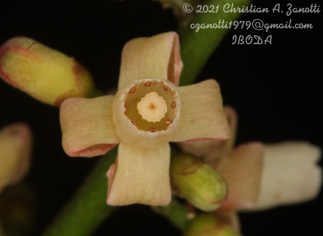 Árbol o arbolito hasta de 10(-20) m de alto; tronco circular, ramificado desde la base; corteza externa profundamente fisurada, reticulada, pardo clara; corteza interna fibrosa, blanca a amarillenta; ramas terminales pardas, pubescentes y tornándose glabras. Hojas con pecíolo cilíndrico; láminas 2-7(-9)-yugadas, de 12-45 cm de largo; folíolos 4-14(-18), opuestos, raro subopuestos, elípticos, oblongos u oblongo lanceolados, de (4-)6-25(-33) × 2,3-7 cm, base aguda, atenuada a cuneada, ápice obtuso a redondeado o agudo a cuspidado, glabra o con la cara abaxial pubescente, cartácea a coriácea, discolora; cara abaxial con o sin papilas rojizas y líneas glandulares translúcidas. Inflorescencias de 10-25(-35) cm de largo. Flores 4-meras, rosadas, raro blancas o rojizas, pubérulas a pubescentes, fragantes; pedicelo de 2-5 mm de largo, articulado; cáliz subhemisférico de 1-3 mm de largo, irregularmente lobulado; pétalos de (5-)6-9 mm de largo; ovario pubérulo a pubescente. Fruto una cápsula globosa a deprimidoglobosa o subpiriforme, de 0,75-3 cm de largo, estrechándose gradualmente hacia la base, densamente pubescente a esparcidamente pubérula, densamente papilosa, lisa a costada o tuberculada, verrugosa, acanalada o lisa, rojiza, púrpura a morada. Semillas 1-2 por valva, elipsoide cuando solitaria o truncadas cuando superpuestas; sarcotesta rojiza a naranja.
