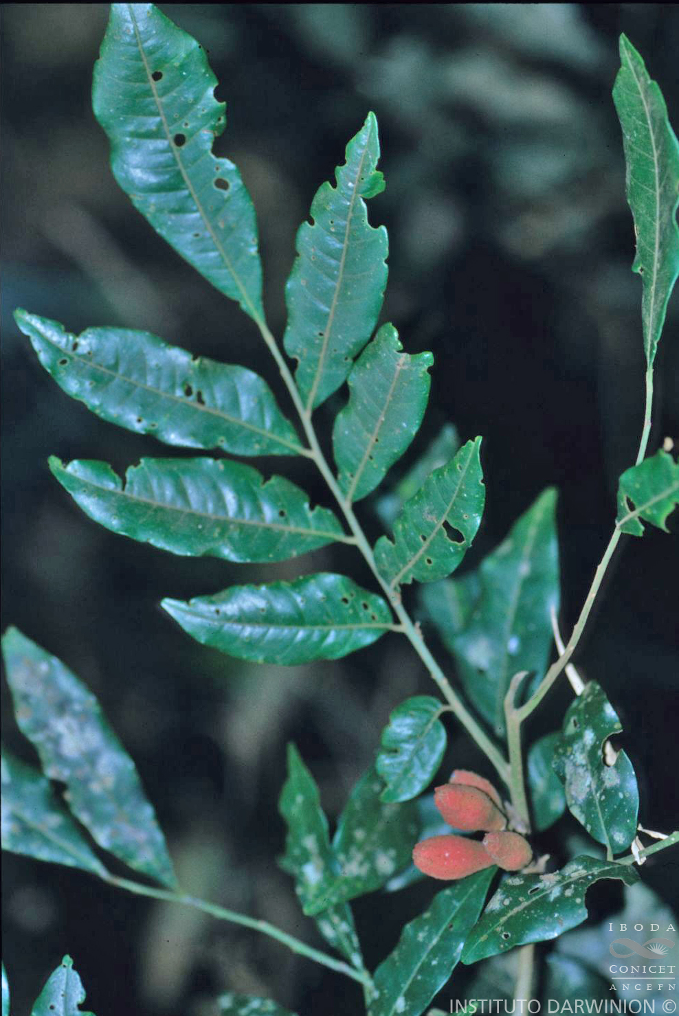 Observaciones: Nombres vernáculos y usos. “Amarelinho”, “caá-vo-robeí”, “catiguá”, “catiguá colorado”, “catiguá puitá”, “catihuá-guazú”. Su madera se utiliza para obras externas por su resistencia, en mangos arqueados de herramientas, en carpintería y como leña. También junto con su corteza, “achite”, que contiene tanino,