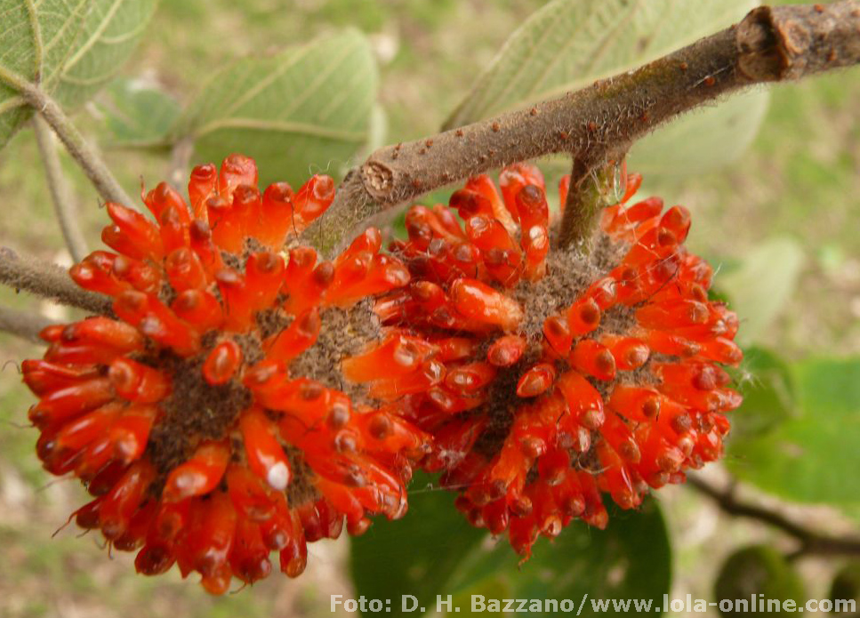 Árbol de 8-15 m de alto, de corteza grisácea; ramas jóvenes subtomentosas, hirtelas o pubérulas, con peridermis castaña. Hojas con láminas ovadas, elípticas a cordiformes, de 5-20 × 4-13 cm, base cordada, redondeada o subcuneada, ápice acuminado a subagudo, margen crenado a serrado-dentado, cara adaxial hispídula y áspera al tacto, cara abaxial pubescente o subtomentosa en las venas, con 5-9 pares de venas laterales, cartácea; pecíolo de 2-9 cm de largo, subtomentoso; estípulas de 0,5-1,5 cm de largo, puberulentas, caducas. Inflorescencias estaminadas en espigas de 3-10 cm de largo; pedúnculo de 1-2,5 cm de largo, puberulento a tomentoso. Flores estaminadas con perianto de 1,5-2 mm de largo, puberulento; estambres con fi lamentos de 2-3,5 mm de largo, anteras de 0,6-0,8 mm de largo; pistilodio de 0,5 mm de largo, a veces ausente; brácteas subuladas interflorales de 1-5 mm de largo. Infl orescencias pistiladas capitadas, solitarias, de 1-1,2 cm de diámetro, puberulentas; pedúnculo de 0,3-1,5 cm de largo. Flores pistiladas con perianto de 1 mm de largo, 4-dentado; ovario con estilo lateral; estigma de 7-10 mm de largo; brácteas interflorales clavadas a subpeltadas. Fruto subgloboso, de 1,5-3 cm de diámetro; estípite de 0,3-0,6 cm de largo, rojizo. Semilla ovoide, de 2-2,5 mm de largo.