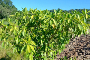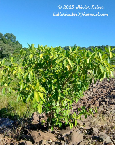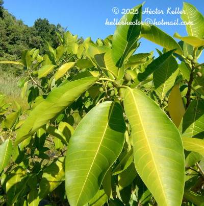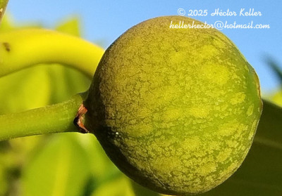 Árbol de 10-15 m de alto; ramitas con peridermis castaño-clara a castaño-rojiza. Hojas con pecíolos de 1-3,5 mm de largo, levemente canaliculados en la cara superior; lámina angostamente ovada a elíptica, de 5-16 × 2-6,5 cm, base cuneada, ápice acuminado, con dos glándulas en la axila de la vena secundaria basal, glabra; estípulas de 3-5 cm de largo, desiguales, castañas, glabras. Inflorescencia en siconos de 0,5-1 cm de largo (cuando secos), solitarios o geminados, axilares, levemente aplanados en la zona del ostíolo, verde-amarillentos, levemente pilosos; pedúnculos de 1-3 mm de largo, pilosos a glabrescentes; brácteas basales 3, triangulares, de 1-1,2 mm de largo.