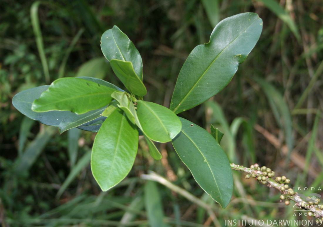 Árboles de 2-5 m de alto, con las ramas terminales de 3-4 mm de diámetro, lisas, glabras. Hojas elípticas, de 11-15 × 3-5 cm, coriáceas, lisas, glabras, con glándulas y líneas translúcidas en su superficie, de ápice agudo, base aguda-decurrente, los márgenes ligeramente revolutos; pecíolo de 1-2,5 cm de largo. Inflorescencias estaminadas y pistiladas, 6-9-floras, con pedúnculo de 2-2,5 mm de largo, brácteas triangulares, de 1 mm de largo, con tricomas. Flores (4-)5(-6)-meras, de 5-7 mm de largo, pedicelos de 3-4 mm de largo; sépalos de 1 mm de largo, de ápice agudo, ciliados y raramente con cavidades secretoras globosas y elípticas en su superficie; pétalos con lóbulos lanceolados, de 3-4 × 1 mm, de ápice obtuso-agudo, ciliados y con cavidades secretoras lineales, en mayor densidad que las globosas y elípticas en su superficie; estambres de 2-2,2 mm de largo, estaminodios de 0,8-1,2 mm de largo, filamentos connados; ovario globular de 1-1,2 × 1 mm, estigma cónico, de 1,5-2 mm de largo, 5-lobado; pistilodios globulares, de 1 × 1 mm. Fruto globoso, de 4-5 × 3-4 mm, pericarpio raramente con cavidades secretoras con contenido claro en su superficie. Semillas no vistas.