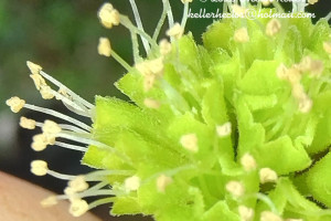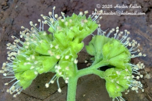 Como se mencionó anteriormente, P. zapallo se diferencia de P. ambigua por su inflorescencia globosa y por las glándulas capitado-pediceladas y erectas del antocarpo (Furlan & Giulietti, 2014). Las flores estaminadas y pistiladas producen néctar y las inflorescencias estaminadas atraen abejas aparentemente por la fragancia dulce, por lo que podrían ser los polinizadores de esta especie (Nores et al., 2013).