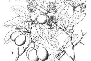 Observaciones: Nombres vernáculos y usos. “Albaricoque”, “albarillo”, “palo tinta”, “nehutekw”, “alhe-lhok” (nombres wichis). Losfrutosson comestibles, las semillas son usadas como purgante, contienen ácido hidrociánico; la madera es dura y pesada y se la utiliza como un sustituto de la madera del sándalo (Burgos, 1993). Los wichís utilizan su corteza para teñir fibras de cháguar. Puede ser una planta tóxica para el ganado por la presencia de glucósidos cianogenéticos en sus partes jóvenes (Ragonese, 1955).