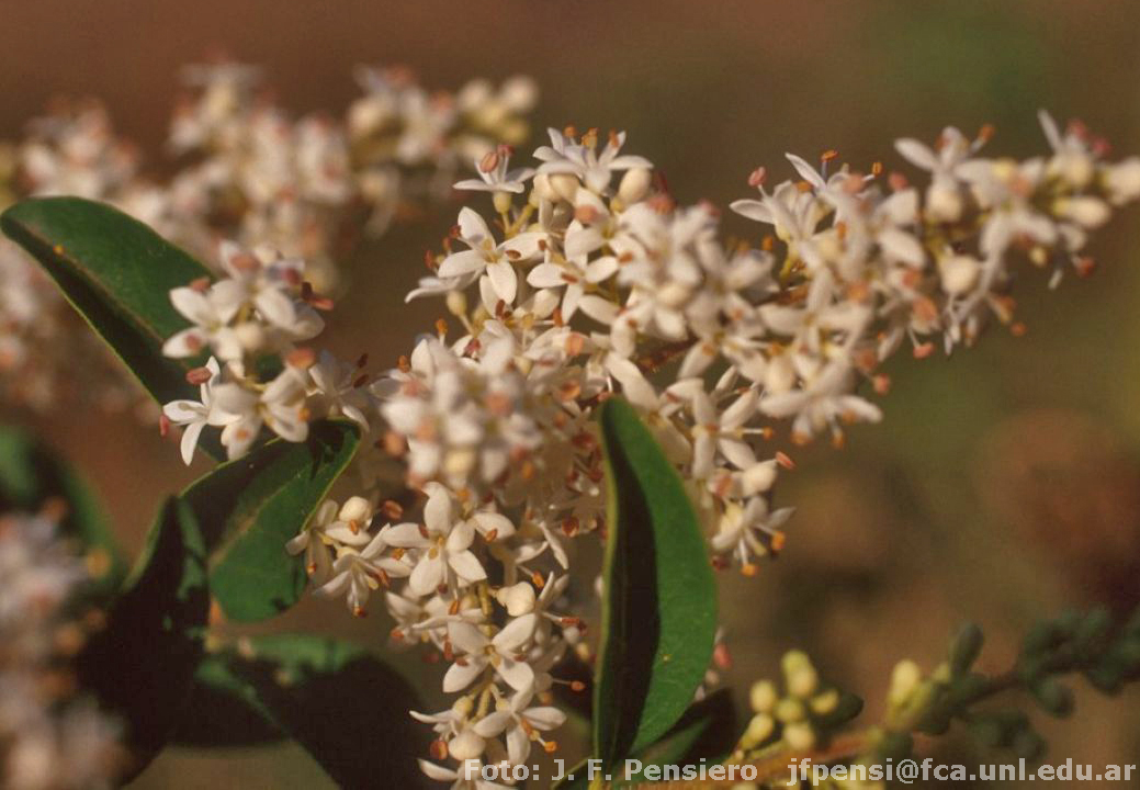Observaciones: Nombre vulgar y usos. “Ligustrina”. Cultivada como ornamental en las regiones templadas de todo el mundo y utilizada para la formación de cercos vivos.