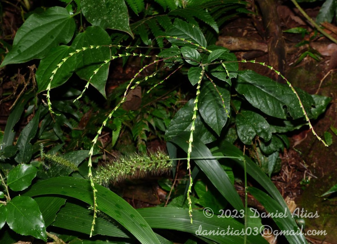 Hierba sufruticosa de 0,3-2 m de alto. Hojas con el pecíolo de 0,1-1 cm de largo; láminas de 3-15 × 1,7-6 cm; estípulas de 1-2,9 mm de largo. Inflorescencia de 5-25 cm de largo, brácteas de 3,5-5,5 × 1-2 mm; bractéolas de 1-3 mm de largo; tépalos de 2-4 × 0,5-1 mm; estambres de 2-2, 2 mm de largo con los filamentos de 1,2 mm de largo, anteras de 1,3-2 mm de largo; ovario de 0,8-1,9 mm de largo × ca. 0,7 mm de diámetro. Fruto de 6-9 × 1,5-2,5 mm, con las setas 4 o 6 setas apicales de 8-9 mm de largo, pubérulas, verdosos. Var. alliacea.- Ovario y fruto con 4 setas apicales.