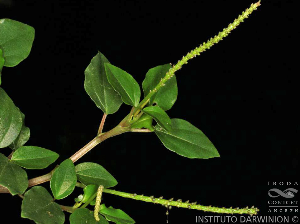 Hierbas terrestres, erectas, de 20-45 de alto; tallos con entrenudos de 2-6(-10) cm de largo, glabros. Hojas alternas, con pecíolos de 1-2,5 cm de largo; láminas ovadas, de (1-)2-3,5 × 1,2- 3 cm, base redondeada a subtruncada, ápice agudo, membranáceas, palmati-5-nervadas, glabras. Inflorescencias axilares, solitarias, espigas filiformes de 4-10 cm de largo, laxifloras; pedúnculos de 1-2,5 cm de largo; brácteas florales orbicular-oblongas. Frutos ovoides, de 0,8-1 mm de largo, sésiles, de superficie reticulada, estigma apical.