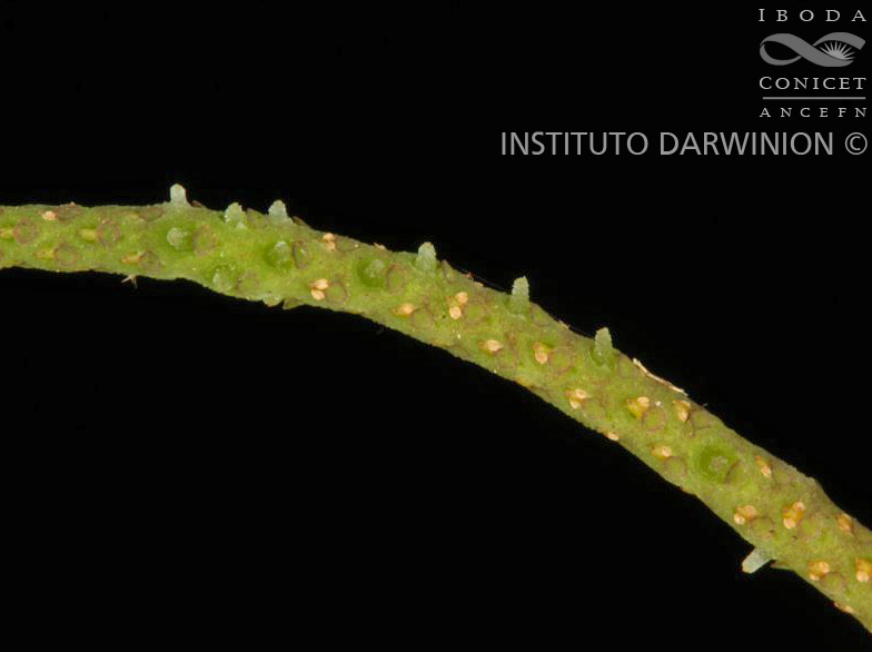 Hierbas epífitas, rastreras, delicadas; tallos filiformes, radicantes en los nudos, glabros o con diminutos pelos crespos esparcidos, entrenudos de 1-2 cm de largo. Hojas opuestas, con pecíolos de 0,5-1 mm de largo; láminas orbiculares, de 4-6 mm de diámetro, base y ápice redondeados, membranáceas, palmati-3- nervadas, pilosas, con pelos crespos o glabrescentes en ambas caras, cilioladas o no. Inflorescencias solitarias y terminales, espigas filiformes de 1-2,5 cm de largo; pedúnculos de 0,5-1 cm de largo, con 2 brácteas pedunculares opuestas en la zona media, elípticas, pilosas, cilioladas, de 0,1 cm de diámetro; brácteas florales orbiculares. Frutos ovoides, de 0,8-1 mm de largo, de superficie lisa, sésiles o estipitados, con estigma apical..