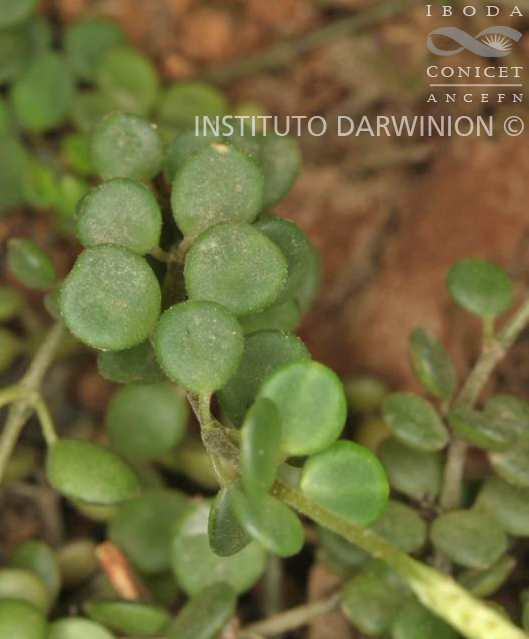 Hierbas epífitas, laxa a densamente cespitosas, con tricomas diminutos y bifurcados en toda la planta; tallos con entrenudos de 0,5-1,5 cm de largo, radicantes en los nudos inferiores. Hojas dispuestas en verticilos de 3-4(-5) en cada nudo, con pecíolos de 1-3 mm de largo; láminas suborbiculares, de 0,3-1 × 0,2-0,5 cm, base obtusa, ápice redondeado a obtuso, margen subrevoluto, cartáceas, palmati-3-nervadas, cilioladas, glabrescentes en ambas caras. Inflorescencias solitarias y terminales, con espigas densifloras de 0,8-2,5 cm de largo; pedúnculos de 0,5-1,8 cm de largo; brácteas florales orbiculares. Frutos ovoides a elipsoides, de 0,5-1 mm de largo, sésiles, inmersos hasta la mitad del raquis, de superficie lisa, ápice levemente rostrado, estigma apical.