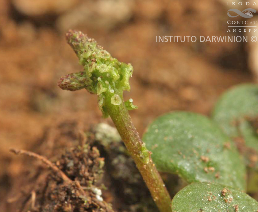 Hierbas terrestres, erectas, de 3-5 cm de alto, acaulescentes, con tubérculo basal, glabras. Hojas peltadas, con pecíolos de 1,5-2,5 cm de largo; láminas subdeltoideas, de 0,5-1 × 0,8-1 cm, base redondeada a subcordada, ápice obtuso a redondeado, cartáceas, palmati-7-nervadas, glabras. Inflorescencias originadas directamente del tubérculo basal, espigas densifloras, de 0,5-2 cm de largo; pedúnculos de 2-3 cm de largo; brácteas florales elípticas. Frutos ovoides, de 0,8-1 mm de largo, sésiles, de superficie verrucosa, con engrosamiento apical estigmatífero en forma de disco, estigma apical.