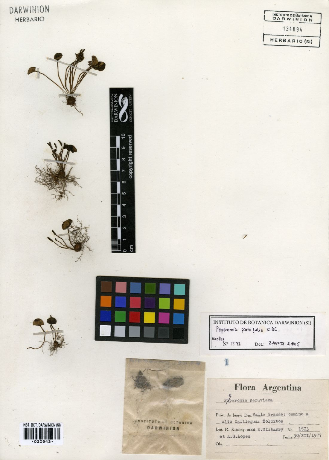 Hierbas terrestres, erectas, de 3-5 cm de alto, acaulescentes, con tubérculo basal, glabras. Hojas peltadas, con pecíolos de 1,5-2,5 cm de largo; láminas subdeltoideas, de 0,5-1 × 0,8-1 cm, base redondeada a subcordada, ápice obtuso a redondeado, cartáceas, palmati-7-nervadas, glabras. Inflorescencias originadas directamente del tubérculo basal, espigas densifloras, de 0,5-2 cm de largo; pedúnculos de 2-3 cm de largo; brácteas florales elípticas. Frutos ovoides, de 0,8-1 mm de largo, sésiles, de superficie verrucosa, con engrosamiento apical estigmatífero en forma de disco, estigma apical.