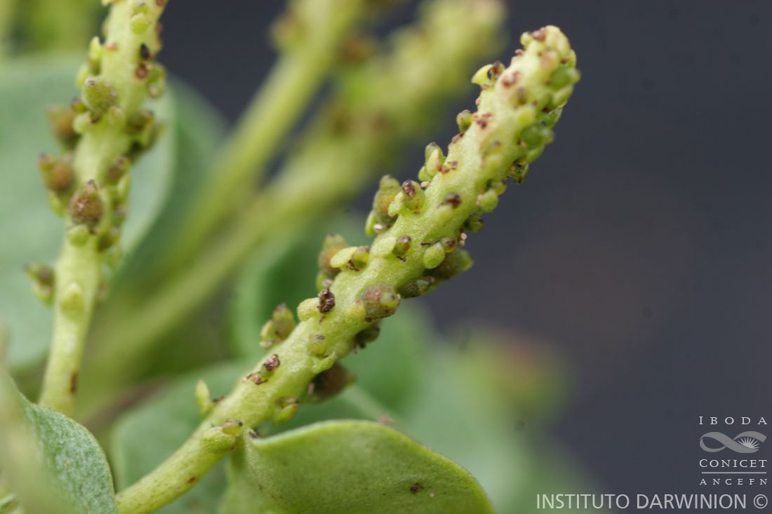 Hierbas terrestres, erectas, de 3-5 cm de alto, acaulescentes, con tubérculo basal, glabras. Hojas peltadas, con pecíolos de 1,5-2,5 cm de largo; láminas subdeltoideas, de 0,5-1 × 0,8-1 cm, base redondeada a subcordada, ápice obtuso a redondeado, cartáceas, palmati-7-nervadas, glabras. Inflorescencias originadas directamente del tubérculo basal, espigas densifloras, de 0,5-2 cm de largo; pedúnculos de 2-3 cm de largo; brácteas florales elípticas. Frutos ovoides, de 0,8-1 mm de largo, sésiles, de superficie verrucosa, con engrosamiento apical estigmatífero en forma de disco, estigma apical.