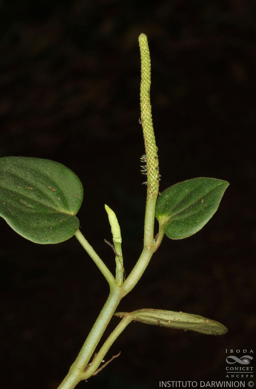 Hierbas terrestres o epifitas, erectas, de 20-40 cm de alto; tallos radicantes en los nudos, entrenudos de 2,5-6 cm de largo, crespo-pubescentes. Hojas alternas, con pecíolos de 2-4 cm de largo; láminas redondeado-ovadas, de 2,5-4,5 × 3,5-5 cm, base truncada a redondeada o subcordada, ápice cortamente acuminado, membranáceas, palmati-5-nervadas, cilioladas, membranáceas, pubescentes. Inflorescencias solitarias, axilares, con espigas de 3-4 cm de largo; pedúnculos de 2-3 cm de largo. Frutos elipsoides, de 0,8-1 mm de largo, sésiles, de superficie papilosa, con protuberancia estilar alargada (rostrada).
