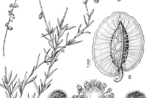 Hierbas de 15-150 cm de alto; tallos pubérulos a tomentosos con tricomas estrigosos menores a 0,5 mm de largo. Hojas alternas; pecíolos ca. 1 mm de largo, pubérulos; láminas lineares, de 15-45 × 1-1,8 mm, ápice agudo a obtuso, glabrescentes. Inflorescencias de 10-25 cm de largo luego de fructificar; raquis pubérulo, nectarios extraflorales ausentes; brácteas triangulares, de 1,2-3 mm de largo, pubérulas; bractéolas de menor tamaño. Flores de 4-5 mm de largo, blancas a violáceas y con ápice amarillento; pedicelo ca. 1,5 mm de largo; sépalos externos glabros o ciliados; sépalo externo inferior ovado, ca. 2 × 1 mm, ápice agudo; sépalos externos superiores ovados, ca. 1,5 × 1 mm, ápice agudo; sépalos internos “alas” elípticos, ca. 3,5 × 3 mm, ápice obtuso, glabros; quilla 3-lobulada, ca. 4 mm de largo, pétalos laterales ca. 3,5 mm de largo, ápice obtuso, pubescentes en la porción media adaxial, fusionados con la vaina estaminal; estambres 8, vaina estaminal ca. 3 mm de largo, porción libre de los filamentos estaminales separados entre sí en grupos de cuatro por una barra pubescente; ovario de contorno oblongo, ca. 2 × 1 mm, glabro; estilo curvo ca. 2,5 mm de largo, ensanchado distalmente, auriculado, glabro, área estigmática con el lóbulo estéril agudo, lóbulo fértil 1-tuberculado. Fruto samaroide elipsoide, ca. 7-8 × 5-6 mm, asimétrico, glabro o pubescente. Semilla 1.