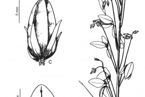 Subarbustos hasta de 80 cm de alto, con pubescencia lanosa, pelos larguísimos, blancos, transparentes, brillantes, pluricelulares. Rizomas subleñosos cortos. Raíces fibrosas, ramificadas. Tallos ramificados, pubescentes o glabrescentes; entrenudos de 1-3 cm de largo. Hojas escasas; pecíolos filiformes, hasta de 40 cm de largo, ensanchados en la base, canaliculados, pubescentes; peciólulos gruesos, pubescentes, de 1 mm de largo; folíolos 3, ovado-oblongos, elípticos o suborbiculados, de 10-30 × 5-20 mm, levemente incisos, en la haz glabros o con pelos adpresos o subhirsutos sobre el nervio medio y esparcidos en el envés, hasta glabrescentes; calli no observados. Cimas 3-5-floras, laxifloras, mayores que el follaje; brácteas de 1,5 mm de largo; bractéolas lanceoladas a linear-acuminadas; pedicelos de 4 mm de largo, articulados en la mitad inferior, pubescentes. Flores hasta de 25 mm de diámetro; sépalos ovado- a linear-acuminados, de 4,5-7 × 1- 2 mm, verdosos, pubescentes, con el borde hialino; pétalos obovado-subespatulados, amarillos. Cápsulas cilíndricas, de 10- 12 mm de largo, el cáliz menor que la mitad de su longitud. Semillas piriformes, pardas, asimétricas, costadas, con 12-14-estrías transversales profundas, con protuberancias en zig-zag.
