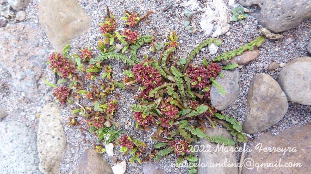 Rumex crispissimus Kuntze var. unigibbus Hauman var. unigibbus Hauman Anales Soc. Ci. Argent. 86: 247. 1918 En la descripción original de R. crispissimus var. unigibbus, Hauman cita varias colecciones: “Las Cuevas, mars 1918”, “Horcones, Janvier 1908, mars 1918”, “Vallée du Lago Blanco, leg. Koslowsky 229”, y Vallée du Rio Santa Cruz (Herbier du Musée de La Plata)”. Se ha podido localizar solamente un ejemplar cuyos datos de etiqueta son: “Mendoza, Las Cuevas, III.1918, Hauman s.n., typus varietatis”, que parece corresponder a la primera colección mencionada; el mismo ha sido designado aquí lectotipo de la variedad por corresponderse con el protólogo de la misma.
