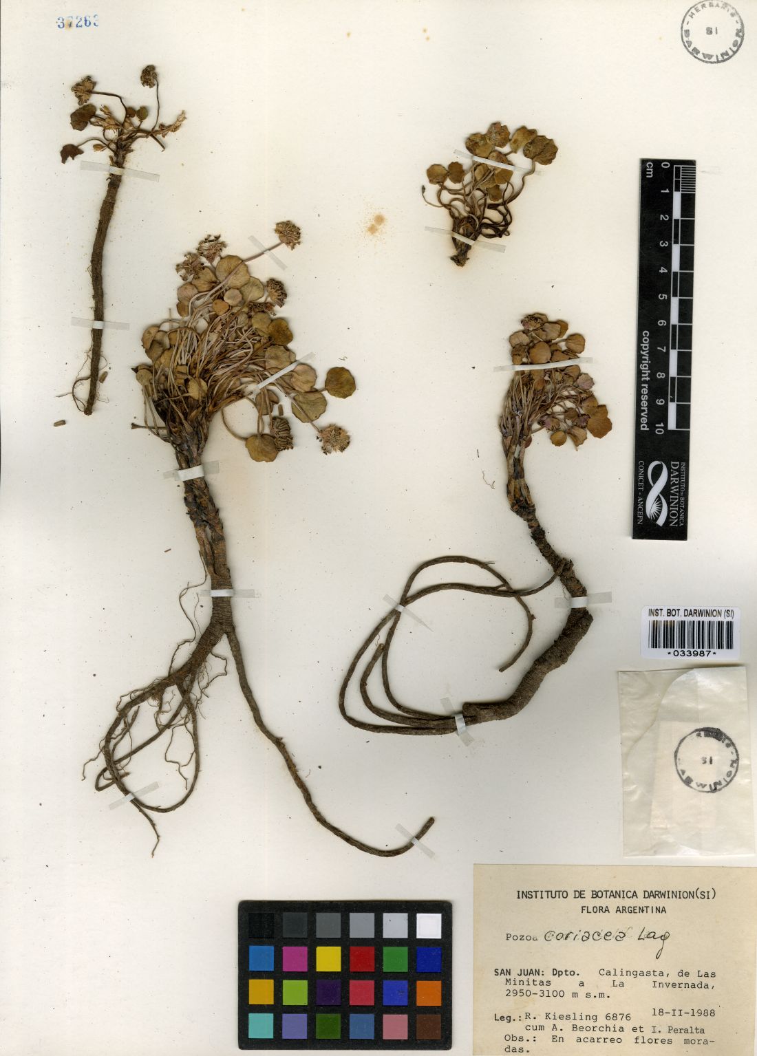 Observaciones: Varias colecciones de individuos que crecen en Neuquén presentan caracteres reproductivos típicos de P. coriacea, con hojas características de P. volcanica, dificultando la delimitación de las especies, tal como lo plantearon Mathias & Constance (1962).