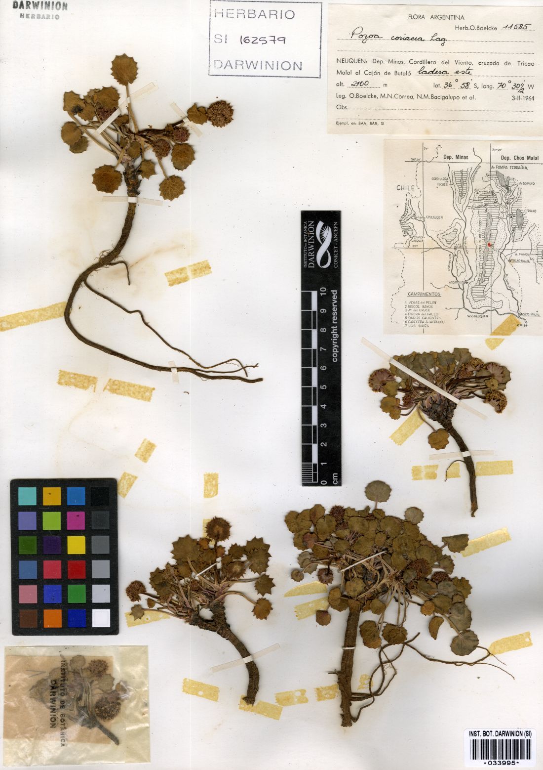 Observaciones: Varias colecciones de individuos que crecen en Neuquén presentan caracteres reproductivos típicos de P. coriacea, con hojas características de P. volcanica, dificultando la delimitación de las especies, tal como lo plantearon Mathias & Constance (1962).