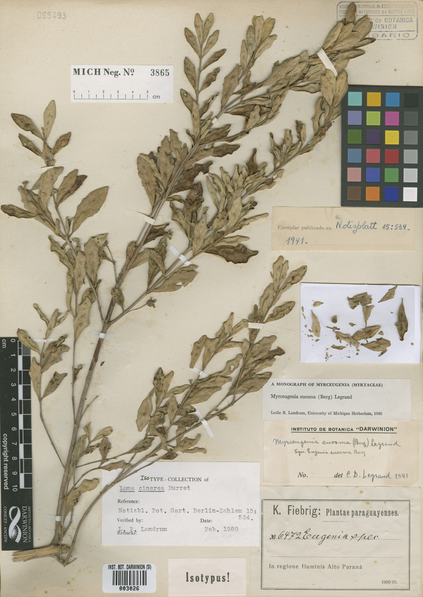 Material Tipo: Basónimo: Eugenia euosma O. Berg