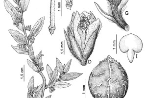 Arbustos o subarbustos dioicos, perennes; sin xilopodio; tallos erectos de 45-200 cm de alto, ramificados desde la base, leñosos desde la base hasta las ramas apicales; entrenudos de 3-3,5 mm de largo con pubescencia malpighiácea densa, serícea en sus órganos jóvenes. Hojas con pecíolos de 1-14 mm de largo, pubescentes; estípulas lineares, de 1-3 × 0,5-0,7 mm, pubescentes; láminas lanceoladas o elípticas, de 0,9-3,2 × 0,3-11 cm, ápice atenuado o redondeado, base atenuada, márgenes levemente aserrados en la mitad distal (raro completamente enteros), con una glándula en el ápice de cada diente, con tricomas seríceos. Inflorescencias de 1,5-4 mm de largo, paucifloras. Flores estaminadas 2 en cada inflorescencia; pedicelo ca. 0,5 mm de largo; sépalos lanceolados o elípticos, de 3,4-3,5 × 0,7-0,9 mm, soldados en la base, con tricomas simples en la cara dorsal; pétalos 5, linear-lanceolados, triangulares u ovados, de 4-5,5 × 1,2-1,5 mm, tricomas en la cara dorsal; nectarios florales 5, ovados, fijos en la base de la columna; estambres 10 (5+5), unidos en una columna, más 5 estaminodios apicales, pubescentes. Flores pistiladas 1(-2); pedicelo ca. 3 mm de largo; brácteas elípticas, ca. 3 mm de largo, pubescentes en el dorso; sépalos lanceolados, elípticos u ovados, de 4,3-6 × 1,6-1,8 mm, margen entero, pubescentes en ambas caras; pétalos 5, espatulados a obovados de 4,5-5 × 1-1,4 mm, libres, pubescentes en ambas caras, blanco-amarillentos; nectarios 5, globosos, fijos al receptáculo; ovario cónico, densamente pubescente; estilos 3, de 1,2-1,4 mm de largo, 2-fidos, densamente pubescentes hasta ápice, estigma papiloso. Fruto una cápsula de 6-6,7 × 4,1-5 mm, menor que los sépalos acrescentes, con pubescencia densa, columela persistente. Semillas globoso-ovoides, de 2,4-3 × 2-2,2 mm.
